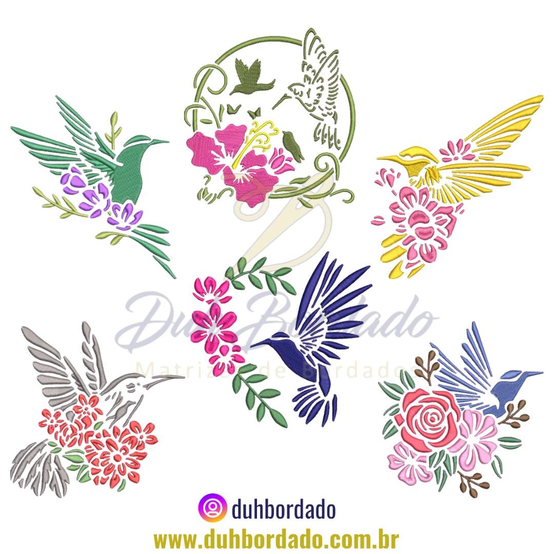 Coleção de Matrizes de Bordados de Passarinhos Floral