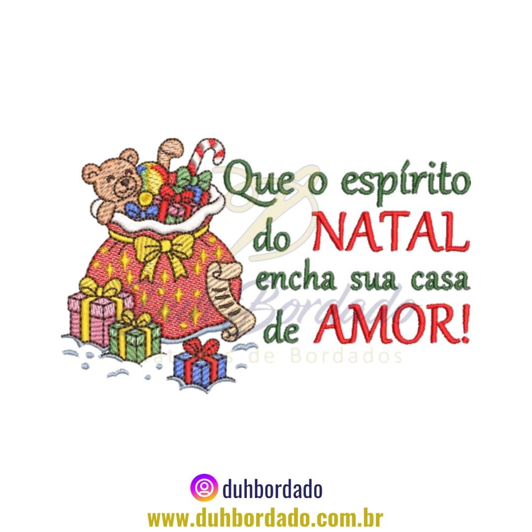 Matriz de Bordado de Saco de Presentes Com Frase Que o Espírito Natalino do Natal Encha Sua Casa de Amor!